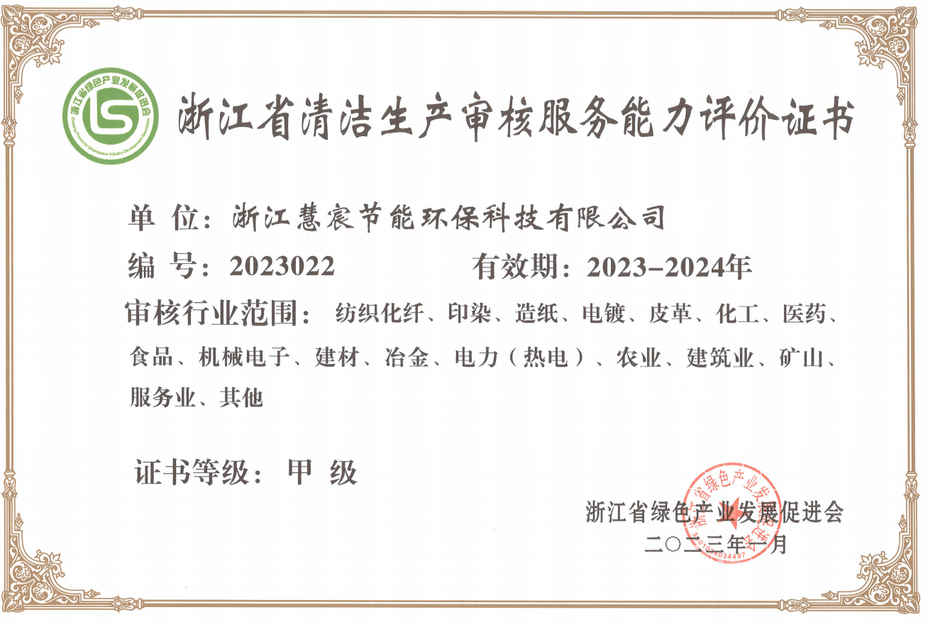 甲级 清洁生产审核能力服务评价证...
