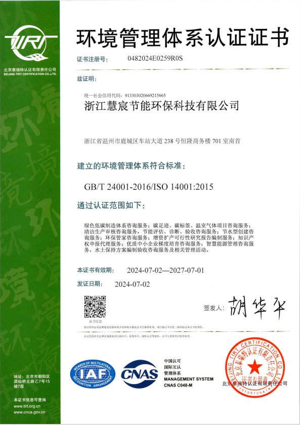 环境管理体系认证证书